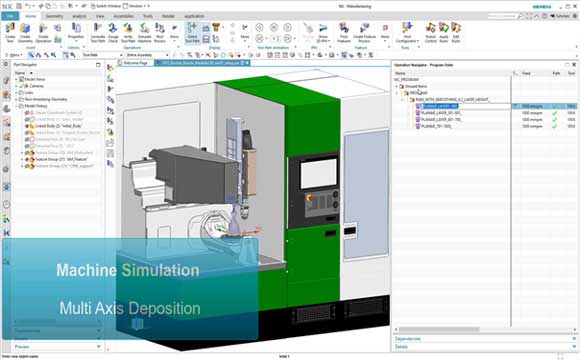 該軟件是中科煜宸基于西門子NX平臺(tái)中的Multi Axis Deposition模塊開發(fā)的增材制造路徑規(guī)劃和減材加工路徑規(guī)劃一體化平臺(tái),配置機(jī)床三軸、機(jī)床五軸四聯(lián)動(dòng)、機(jī)床五軸五聯(lián)動(dòng)等多種增減材制造裝備結(jié)構(gòu),以及西門子828D、840D,華中數(shù)控、廣州數(shù)控等多型號(hào)國(guó)產(chǎn)數(shù)控系統(tǒng),機(jī)器人控制系統(tǒng)等的后處理器,可直接輸出裝備運(yùn)動(dòng)數(shù)控程序。在該軟件平臺(tái)上拓展形成的“裝備結(jié)構(gòu)+數(shù)控系統(tǒng)”數(shù)字化增減材制造裝備模型庫(kù),可實(shí)現(xiàn)對(duì)中科煜宸增減材裝備標(biāo)準(zhǔn)機(jī)型的全方位虛擬操作使用,優(yōu)化零件打印路徑規(guī)劃策略,檢查設(shè)備運(yùn)動(dòng)過程中的干涉碰撞情況;根據(jù)待打印零件的幾何特征情況,可對(duì)非標(biāo)類增減材制造裝備進(jìn)行優(yōu)化設(shè)計(jì)。