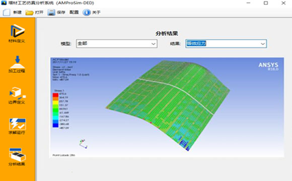 RC-CAE軟件是一套基于 ANSYS 軟件平臺(tái)二次開發(fā)形成的面向金屬增材制造定向能量沉積工藝(DED)的專業(yè)工藝仿真系統(tǒng)。軟件考慮溫度相關(guān)的材料非線性屬性,基于工藝文件的運(yùn)動(dòng)路徑信息,模擬增材工藝的材料堆積過程,可以詳細(xì)模擬零件分區(qū)、打印路徑以及熔融冷卻的相變過程對(duì)增材制造過程的影響,預(yù)測(cè)增材制造過程中的溫度、應(yīng)力和變形,優(yōu)化工藝參數(shù),從而保證打印質(zhì)量和打印效率,避免低效的試錯(cuò)過程。 軟件的功能特色有: 掃描路徑模擬:將打印程序的控制指令信息轉(zhuǎn)換為仿真可以讀取的路徑數(shù)據(jù)表,數(shù)據(jù)表描述掃描路徑的坐標(biāo)位置、掃描速度、激光狀態(tài)以及停留時(shí)間等信息,以用于模擬材料的堆積過程。 瞬態(tài)熱分析:采用單元生死技術(shù), 根據(jù)掃描路徑依次激活成型材料來(lái)模擬增材制造過程中狀態(tài)隨時(shí)間變化的熱傳遞行為。瞬態(tài)熱分析的熱源為激光功率輸入,邊界條件為制件、基板與環(huán)境的對(duì)流換熱以及輻射,并考慮相變過程中產(chǎn)生的潛熱,從而模擬在能量作用下,熔池附近的材料經(jīng)歷反復(fù)的熔融凝固過程對(duì)溫度場(chǎng)的影響。 應(yīng)力分析: 在瞬態(tài)熱分析的基礎(chǔ)上,通過熱應(yīng)力耦合分析來(lái)進(jìn)行變形以及應(yīng)力的分析;考慮溫度相關(guān)的非線性應(yīng)力應(yīng)變關(guān)系,模擬打印過程中材料的非線性彈塑性行為,以準(zhǔn)確描述其應(yīng)力應(yīng)變狀態(tài)。