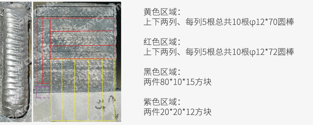 圖 ZM5鎂合金電弧增材樣塊內(nèi)部著色探傷檢測(cè)