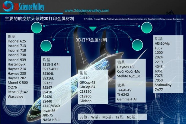 航空增材制造需求的金屬選擇已擴(kuò)大到包括鋁合金、不銹鋼、鈦合金、鎳基和鐵基高溫合金、銅合金和耐火合金。