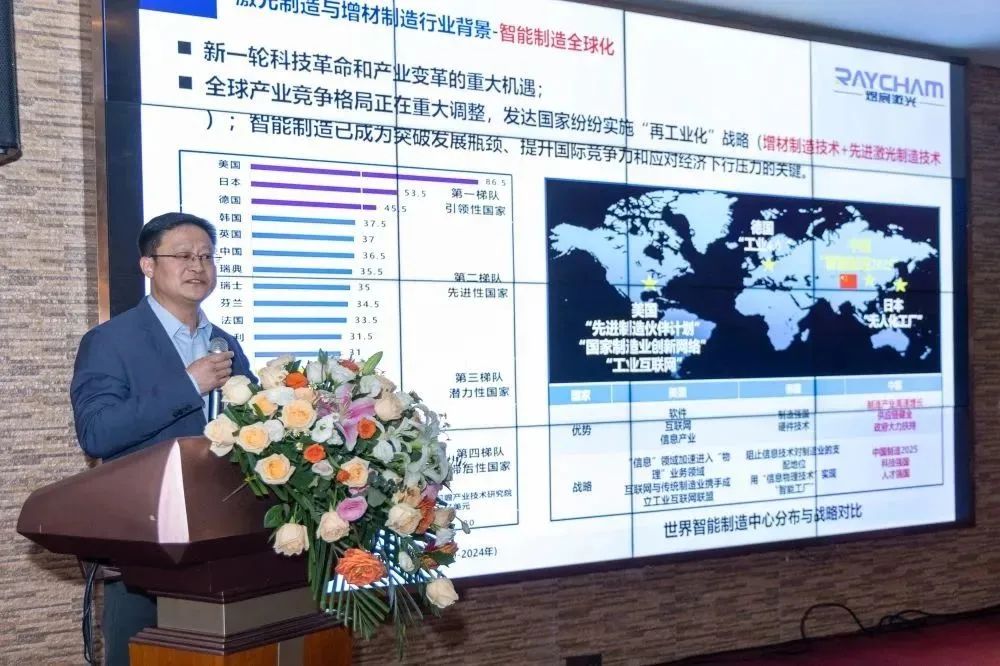 活動初始,與會嘉賓共同參觀了作為承辦單位之一的蘇州中科激光智能制造創(chuàng)新研究院成果中心,研究院院長邢飛接待并介紹道:“激光院是面向航空航天、汽車制造以及醫(yī)療等領(lǐng)域技術(shù)需求,重點布局激光增材制造(金屬3D打印、激光熔覆)、激光焊接、水導(dǎo)激光等激光制造技術(shù)的研發(fā)和成果轉(zhuǎn)移轉(zhuǎn)化。”